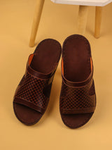 Upgrade your casual footwear with these comfortable genuine leather slides for men. Crafted using premium leather, they provide durability and breathability. The TPR sole ensures flexibility, shock absorption, and stability, making them ideal for everyday walking. Their minimal yet stylish design makes them perfect for casual outfits.